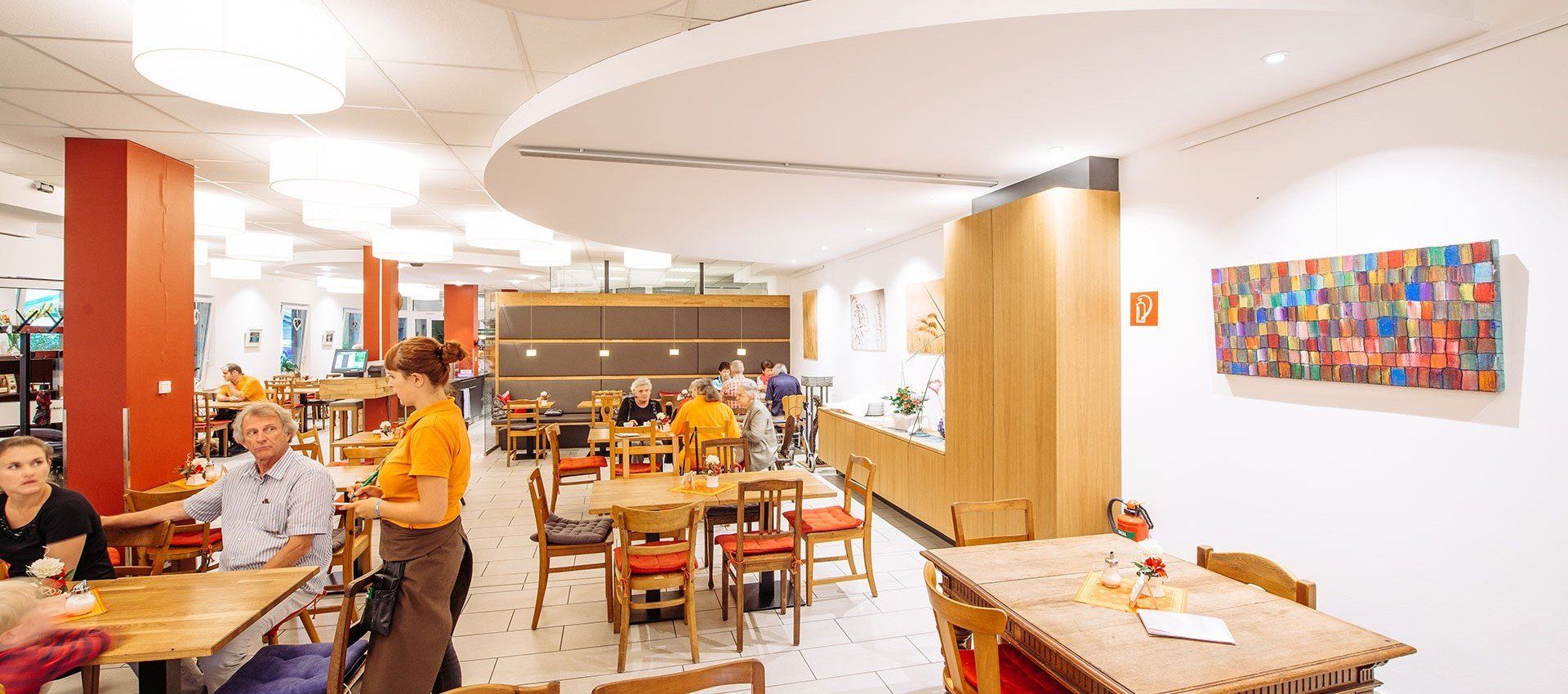 Ein weiteres wichtiges Thema in Eichstetten war, dass die Menschen mit Handicap auswärts in verschiedenen Werkstätten eine Beschäftigung suchen mussten . 2012 wurde deshalb das "Café Mitnander" gegründet. Hier finden Menschen mit Handicap einen Arbeitsplatz auf dem ersten Arbeitsmarkt. Eine sehr schöne Idee. Aus diesen Grunde sollte man dieses Café öfter besuchen und damit unterstützen. Wir sind hier sehr gut bewirtet worden. Es gibt sogar eine Spielecke für die kleinen Gäste.