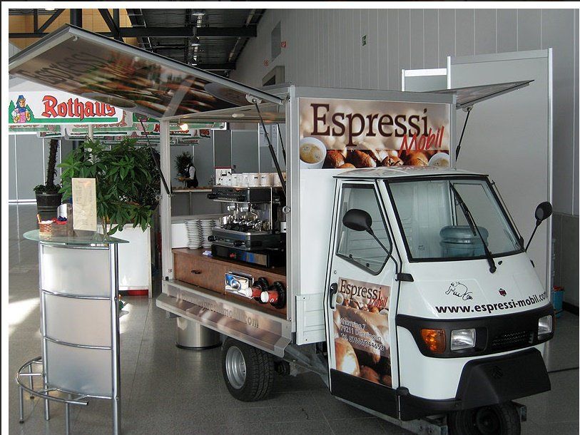 Inzwischen wollen immer Mehr Menschen einen guten Kaffee, auch wenn es nur zwischendurch ist, trinken. Die Denzlinger Firma Espressi Mobil, hat es in den Tat umgesetzt und verkauft Kaffee Spezialitäten Mobil. Mit einem original Italienischen 3 Rad-Auto bringen Sie uns, nicht nur das italienische "Dolce Vita, sondern auch einige gute Kaffeesorten direkt vor die Füße..