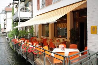 Vollkorn Kuchen, viele Bioprodukte und vegetarische Küche. Das Café im "Klein Venedig" in der Freiburger Altstadt hat eine schöne gemütliche Terrasse, wo man direkt überm "Bächle" auf der Sonnenseite sitzend und das Geschehen auf der Fischerau betrachten kann.